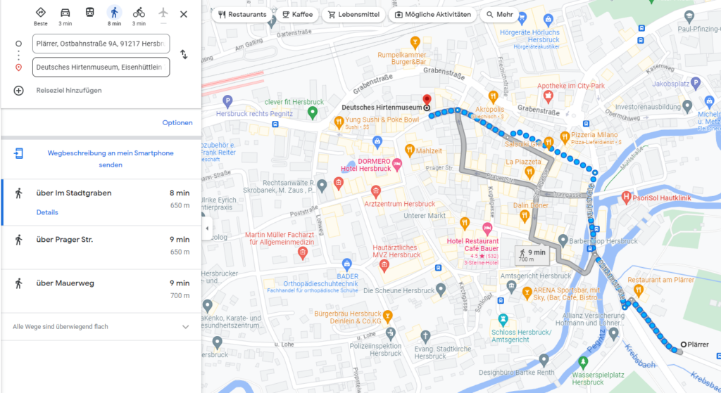 In der Nähe des Hirtenmuseums gibt es in der Innenstadt kostenpflichte Parkplätze. Achtung, dort wirklich einen Parkplatz zu bekommen ist unwahrscheinlich! Und die Gebühren sind teurer als beim Bahnhof.